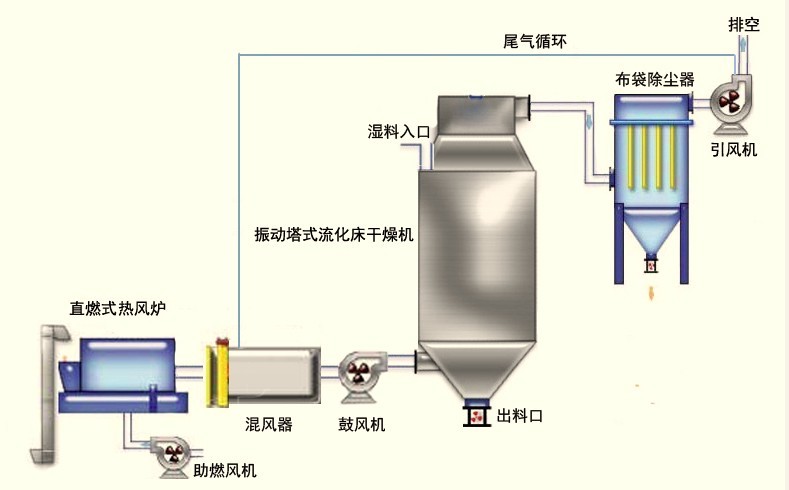 (7)尾氣多級循環(huán)利用,即達到了節(jié)能的目的,還可通過各級配風(fēng)調(diào)節(jié)干燥溫度的同時,大大降低了干燥熱風(fēng)的含氧量。