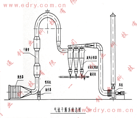 4.處理量大 一根直徑為0.7m長為10~15m的氣流干燥管,每小時(shí)可處理25噸煤或15噸硫銨