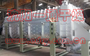 濕物料從供料口連續(xù)供給,通過槳片在槳片附近進行局部攪拌、混合,同時槳片與夾套的熱傳導逐漸使物料干燥,物料邊加熱邊緩慢向出料可口方向移動,由出料可口卸出干品物料。可通過改變溢流堰口高度調(diào)節(jié)滯留時間。